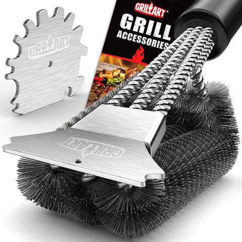 GRILLART Grill Brush and Scraper 18 Inch - Wire Bristle Brush Double Scrapers - Barbecue Cleaning Brush for Gas/Charcoal Grilling Grates - Universal Fit BBQ Grill Accessories, BR-5689